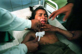 Doctors change the dressing of a six year old girl