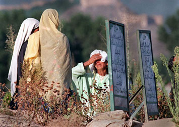 Anguished by the death of her son, a Moslem