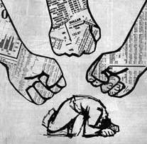 ![]() Num país onde ter todos os dentes na boca e saber escrever são considerados luxos para poucos, onde parasitas sangram o povo diariamente e não representamos mais que números, podemos identificar um dos meios mais eficazes de dominação popular jamais inventados: a mídia. Composta por todos os meios de comunicação, ela é hoje um dos principais problemas de nosso país. Dirigida pelos mais autênticos representantes do fascismo, é uma das instituições mais hipócritas já criadas pelo homem. São muitos os casos da estupidez da mídia e da aristocracia, sua regente. É muito bonito criticar o nazismo, Hitler e seus seguidores imbecis. Mas, percentualmente, quantos são os negros, judeus, palestinos e orientais com sucesso na mídia? E os loiros de olhos azuis, quantos são? É, também, um gesto "muito nobre" fazer campanhas de doações de alimentos para os miseráveis. Mas não é tão nobre pregar a miséria e a submissão ao povo brasileiro. Não é tão nobre eleger os mesmos governantes do tempo de Cabral para mandar de acordo com seus interesses. Não é tão nobre dizer a milhões de pessoas verdades distorcidas e parciais. Também é "muito bonito" fazer campanhas contra as drogas, com o fim de "conscientizar nossos jovens". Por outro lado, ganham fortunas com propagandas de cigarros e bebidas alcoólicas. É muito fácil fazer o império de uns e a caveira de outros, num piscar de olhos, para uma incontável multidão. Infelizmente, é muito fácil enganar. Mas, por quê é tão fácil enganar? Muito simples. Porque a população mal sabe ler. Porque são os donos da mídia que determinam isto, sucateando a educação e impondo para a massa padrões medíocres, como o das esdrúxulas novelinhas, que dizem que "todo rico é mau e todo pobre é bom. Portanto, continue pobre e submisso a mim, para que eu possa lhe transformar em algo mais imbecil do que já é. " - ou "Existe um mundo lindo lá do outro lado. Mas você é limitado e burro demais para chegar lá ." É muito interessante para os nefastos parasitas manter a população ignorante de tal maneira. Assim, podem fazer o que quiserem à vontade, sem ser questionados sobre nada. É muito mais cômodo ver us povu discutindo sobre o jogo da seleção do que sobre os precatórios, sobre a questão indígena no Brasil, sobre a chacina da Casa de Detenção, sobre a ditadura, o fascismo, sobre a brutalidade policial, a questão dos sem-terra, os milhares de latifúndios improdutivos que condenam o Brasil à miséria e ao atraso. É muito melhor mostrar ícones desta podridão