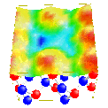 In order to determine the structural properties of defects on semiconductor surfaces using STM, it is crucial to properly interpret the STM images using, for example, state-of-art first principles calculations. The case considered here in the above figures (click on small figures above to see full-size versions) is As vacancies on the GaAs(110) surface. STM images were generated using ab-initio wavefunctions and supercells, which probe the isosurface of the wavefunctions squared over a given energy window. The two figures here were calculated with a negative sample bias of about 2 eV to reveal states associated with surface As atoms. They show, on the appearance, that surface As atoms near the vacancy are displaced towards the underlying bulk. In calculations with large enough surface supercells (see the 2nd figure), significant As displacements in the STM images due to As vacancy were found while in fact the vacancy causes little As atomic motion. Discrepancies between the actual atomic positions and those inferred from the STM images for Ga atoms are even more pronounced. A detailed analysis explaining this paradox is the subject of the reference below.