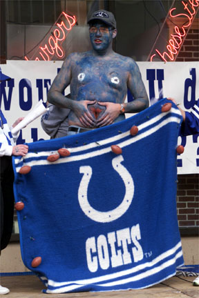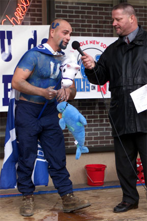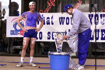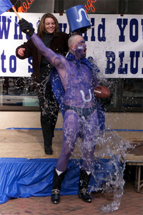 the Colts. Some of the contestants painted themselves blue and shaved body parts,