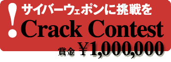 ![]() ウェブページ改ざん自動修復ソフト CyberWeapon(サイバーウエポ ン)の発売を記念して、ホームページ改ざんクラックコンテストを開催します。 勝利者には、賞金100万円を進呈します。 奮 ってご参加ください。 |