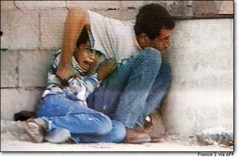 after this image was captured by France 2 TV, the boy was struck by a bullet and