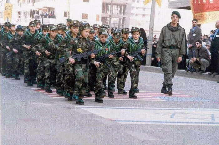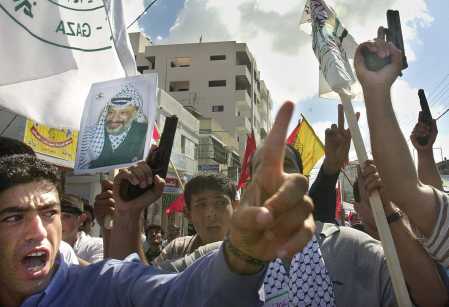 Armed palestines youths and men marching, heh who told that palestines