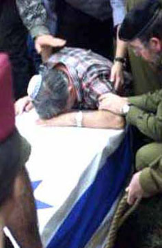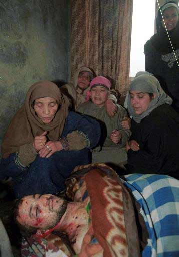 | A daily scene in Israel. A father crying over his sons coffin. The deceased , who was an Israeli soldier was crushed to death by sticks and stones | A Muslim youth killed when a Bomb explosion took place in the crowded market place. The local Muslims who cooperate with the Indian Army are shot dead in the Kashmir valley by Pakistan based terrorist groups . (Jehad against whom???????) |