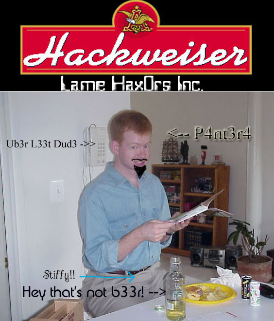 Give it up P4nt3r4, you're still the same lamer that got kicked out of Ph33r-the-b33r and you always will be. I'm glad to see you found other people that could hax0r 3r33t linux boxen since all you seemed to be able to do was run other people's msadc2.pl scripts. Anyways, as to what I think of your all out "war" on capitalism I think it's just your lame excuse for not having a life and having nothing better to do with your pathetic existence, and frankly, it's just sad. So... a big fsck /dev/hackweiser to you and your lame friends.